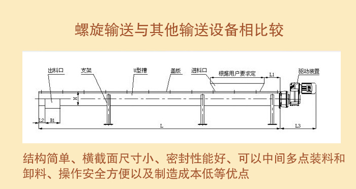 (3)螺旋輸送與其他輸送設(shè)備相比較,具有結(jié)構(gòu)簡單、橫截面尺寸小、密封性能好、可以中間多點裝料和卸料、操作安全方便以及制造成本低等優(yōu)點。它的缺點是機件磨損較嚴重、輸送量較低、消耗功率大以及物料在運輸過程易被破碎。