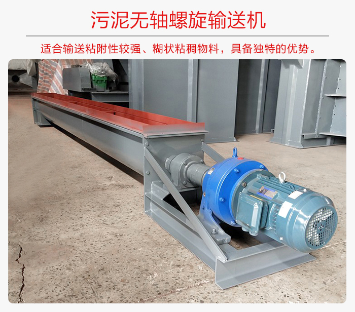 污泥中含有大量的雜質,使用傳統輸送機對其進行輸送很容易出現堵料現象,嚴重影響輸送效率,無軸螺旋輸送機由于采用了無中心軸設計,利用具有一定柔性的整體鋼制螺旋推送污泥,其抗纏繞性強,不會出現物料堵塞的現象。