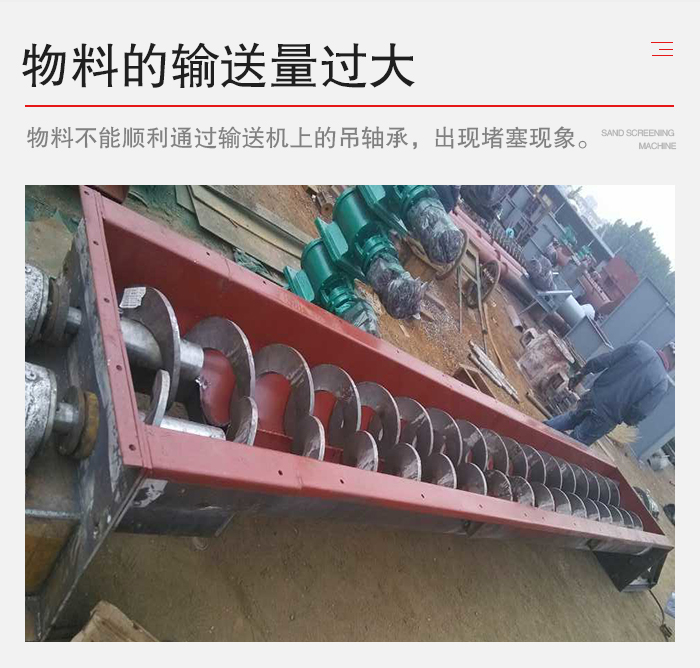 1、物料水分大,集結(jié)在螺旋吊軸承上并逐漸加厚,使來(lái)料不易通過(guò),處理方法是加強(qiáng)原料烘干。
