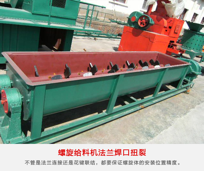 1、由于異常扭矩的產(chǎn)生,聯(lián)結(jié)法蘭焊接失效,處理方法是保證設(shè)備安裝精度,不管是法蘭連接還是花鍵聯(lián)結(jié),都要保證螺旋體的安裝位置精度,安裝后應(yīng)接線(xiàn)調(diào)試確定螺旋轉(zhuǎn)向,聲音有無(wú)異常。試運(yùn)轉(zhuǎn)后檢查電機(jī)、減速機(jī)、軸承溫升,一切正常后,開(kāi)動(dòng)手動(dòng)螺旋料倉(cāng)閘門(mén)逐漸加料,經(jīng)過(guò)調(diào)試后,使螺旋運(yùn)轉(zhuǎn)平穩(wěn)。