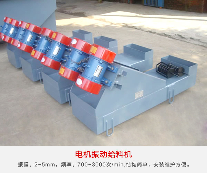 電機振動給料機是以振動電機作為振源的給料設備,振動頻率略遜于電磁振動給料機,但振幅較大,給料量也較大,后期維護比較簡單,出現問題,直接更換振動電機就可以了!