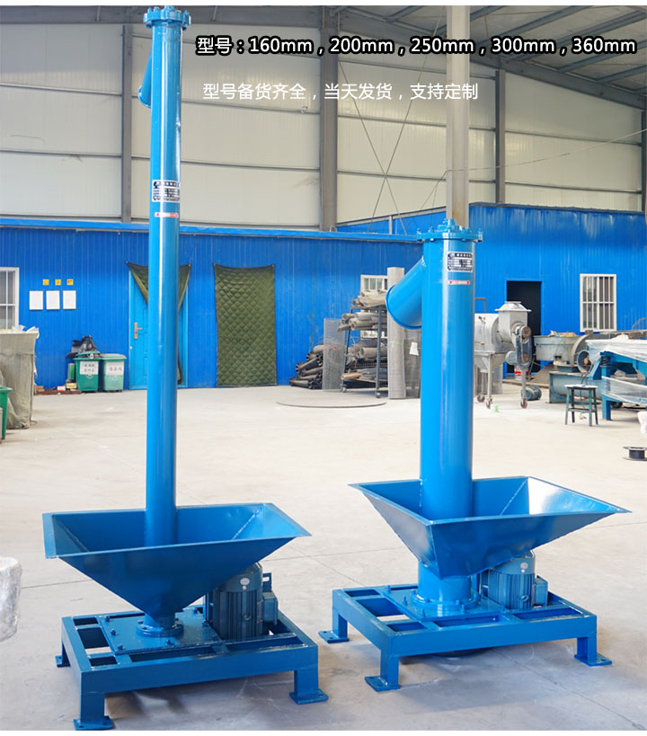 大漢機(jī)械的垂直立式螺旋輸送機(jī)型號(hào)有160,200,250,300,360等5種規(guī)格,且備貨齊全,支持當(dāng)天發(fā)貨;此外,特定型號(hào)可根據(jù)用戶描述需求,設(shè)計(jì)圖紙,進(jìn)行生產(chǎn),如移動(dòng)式垂直立式螺旋輸送機(jī),專用于不固定場(chǎng)所的物料輸送。