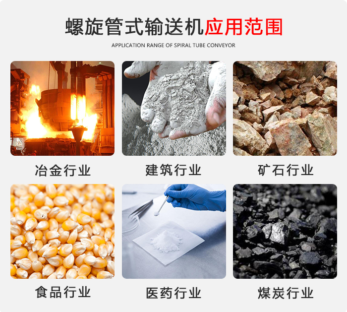 螺旋輸送機(jī)主要用于糧食、建材、冶金、化工、電力等行業(yè)對粉末、顆粒或小塊狀物料進(jìn)行輸送任務(wù),如水泥、混凝土、飼料、化肥、粉煤灰等物料,不宜輸送易變質(zhì)的、粘性大的、塊度大的及易結(jié)塊的物料。