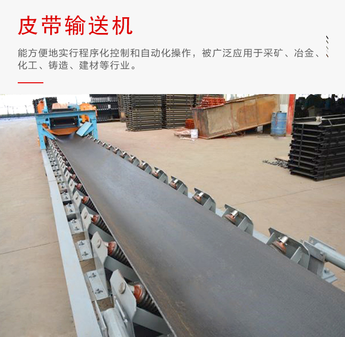 簡介:皮帶輸送機又叫膠帶輸送機,能方便地實行程序化控制和自動化操作