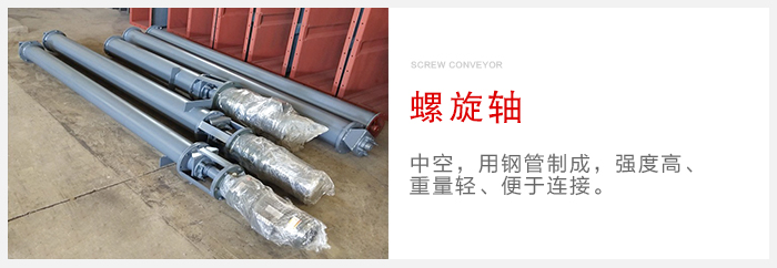 螺旋軸:中空,用鋼管制成,強(qiáng)度高、重量輕、便于連接。在軸與軸的連接處和安裝軸承處使用一小段實(shí)心軸。在連接處將實(shí)心軸伸入空心軸內(nèi)用高強(qiáng)度的螺栓按相互垂直方向?qū)Υ┛招妮S與實(shí)心軸來固定連接螺旋軸。