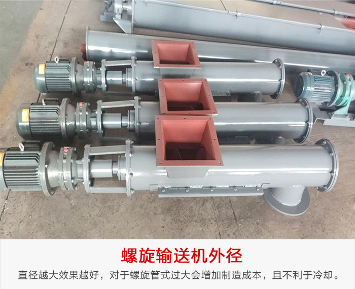 直徑越大效果越好,但是對于開式管式輸送機(jī),螺旋外徑過大會增加制造成本,且不利于冷卻。此外,外徑值沒有必要一定取500的整數(shù)倍。